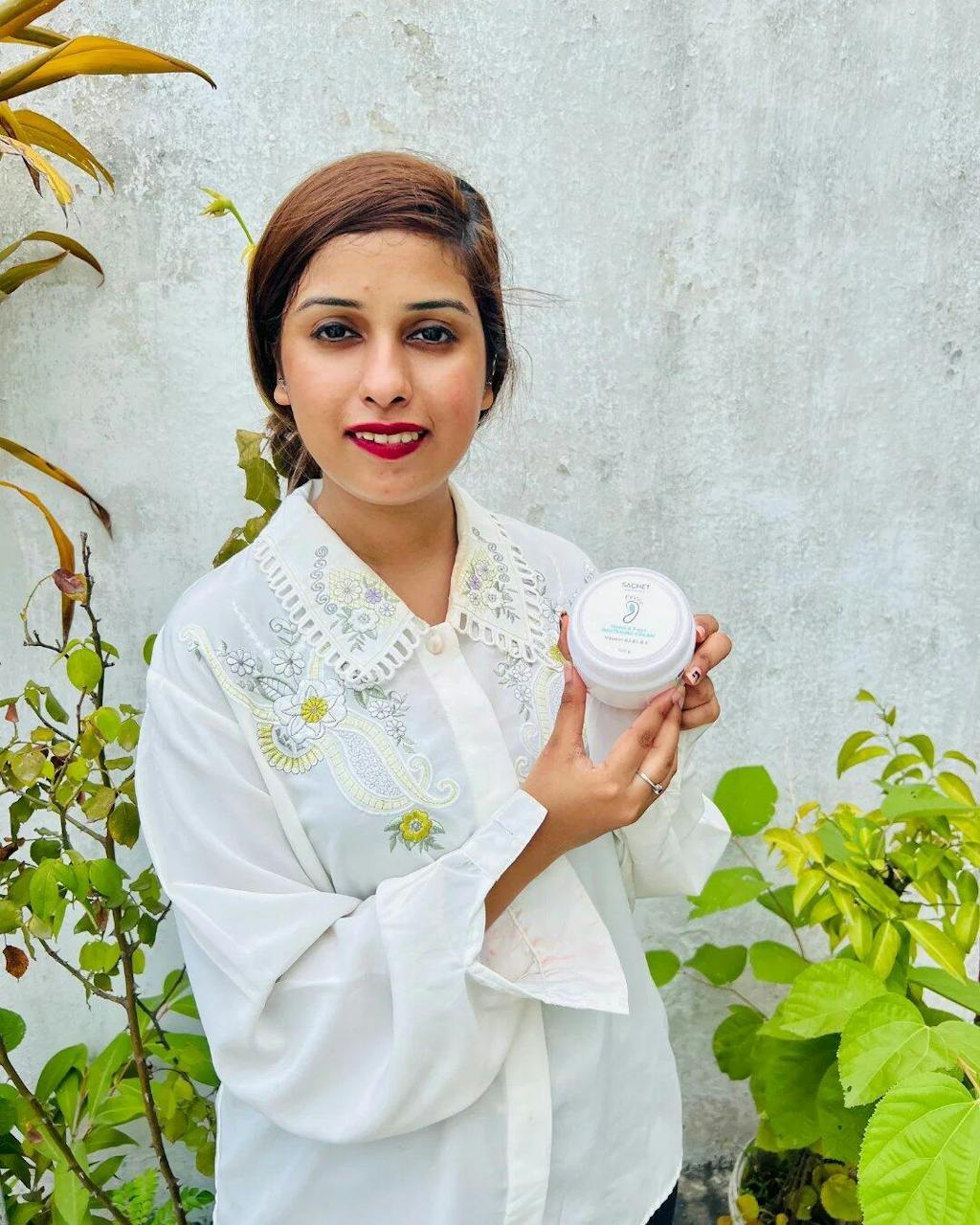 “I am very happy with this hand and feet cream. It makes my skin very soft and smooth after just a few uses. The texture is light and not greasy, and it absorbs quickly. My dry heels have improved a lot. I really like the fragrance too. Highly recommended!”