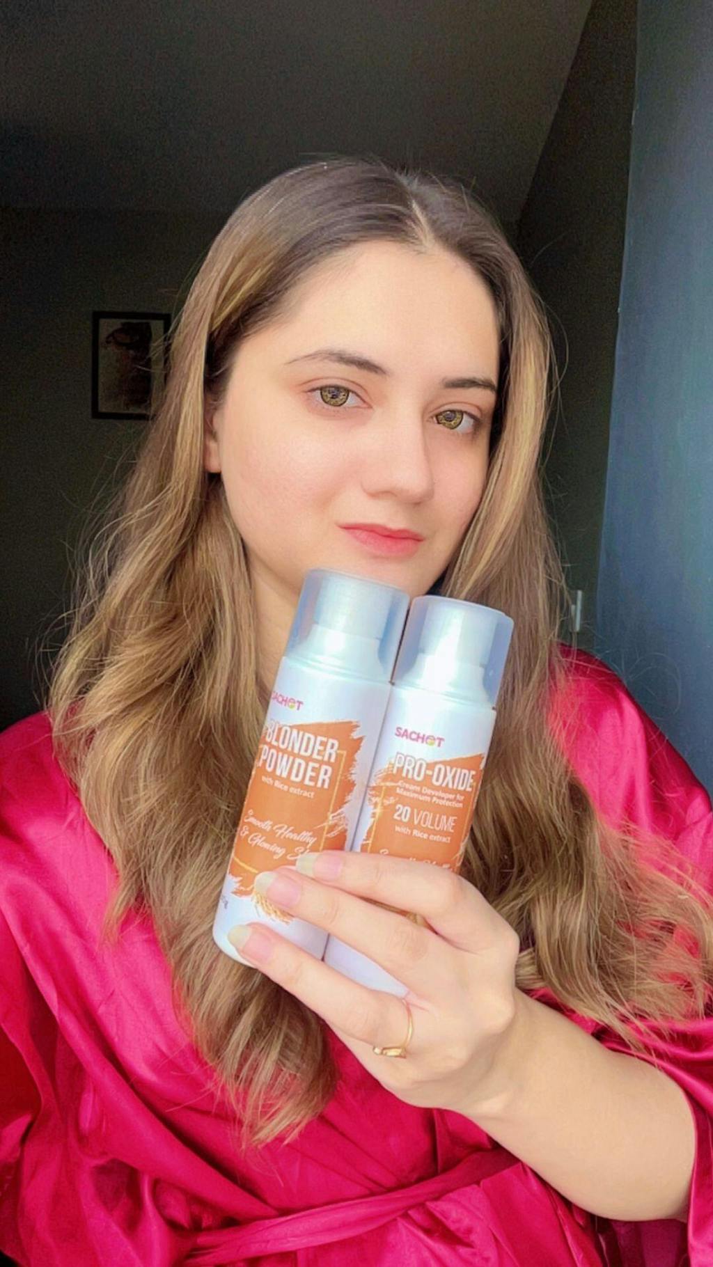 2️⃣ Mix: In a non-metal bowl, combine 2 parts Cream Developer (120 ml) with 1 part Blonder Powder (60 ml). Mix until smooth.